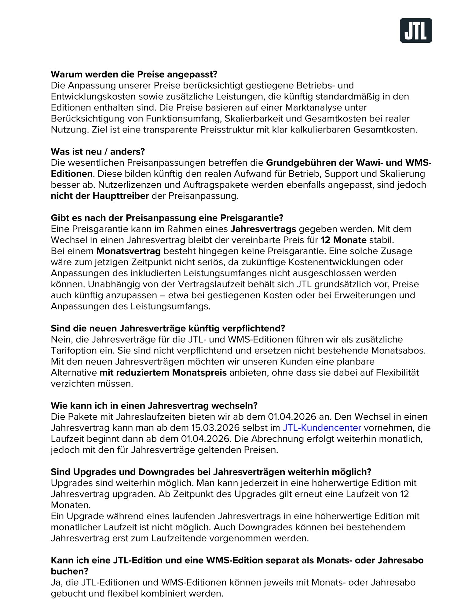 Link zu den FAQ: https://www.jtl-software.com/uploads/2026/02/Partner-FAQ.pdf Passwort: jtlservicepartner2026