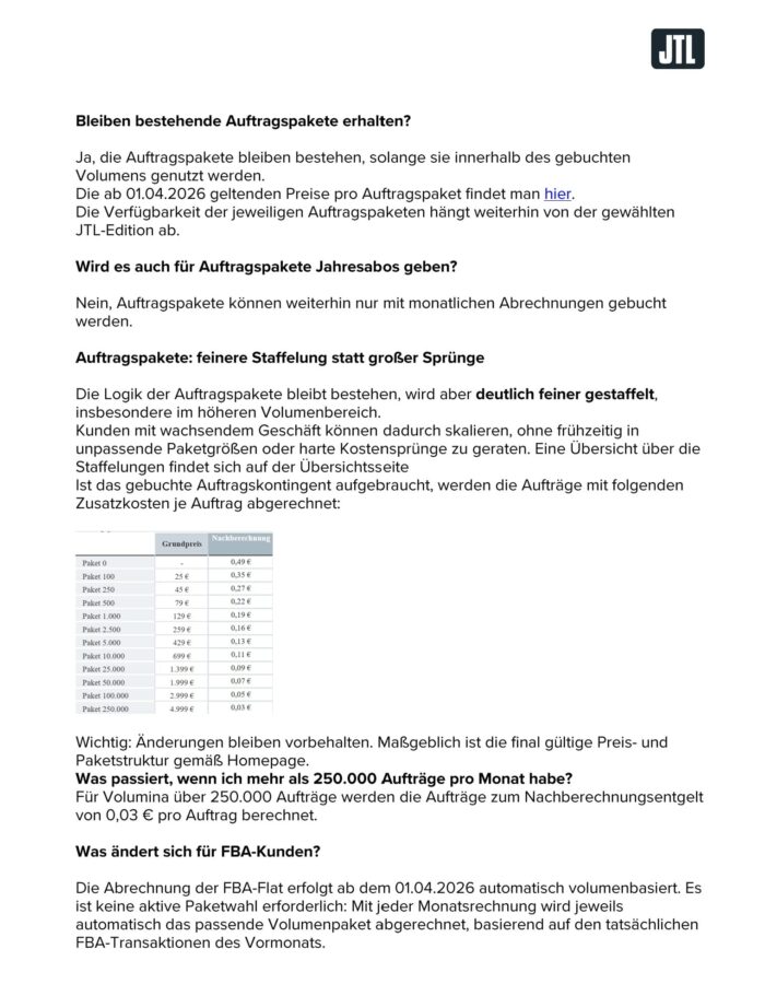- JTLs neue Tarifstruktur ab April 2026: Preiserhöhung mit Autopilot