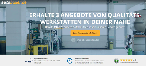 Autobutler.de ist eine Vergleichsplattform für KFZ-Reparaturen. Ein Kunde kann sich bis zu 3 Angebote von KFZ Werkstätten machen lassen.
