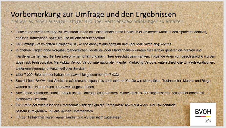 Von selektiven Vertriebsbeschränkungen betroffene Online-Händler können sich zu diesem persönlichen Informationsaustausch per Mail anmelden: [email protected]